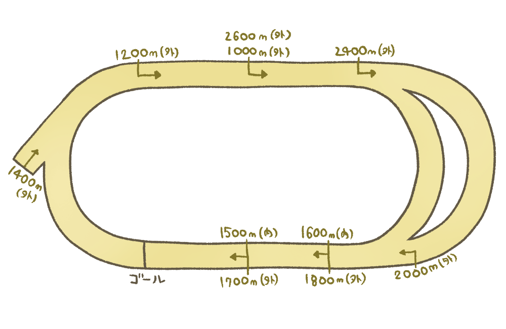 内回りコースは内枠の先行馬が有利になるケースが多いが、外回りコースは枠の有利・不利はあまりない。