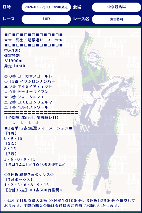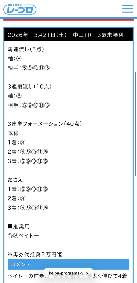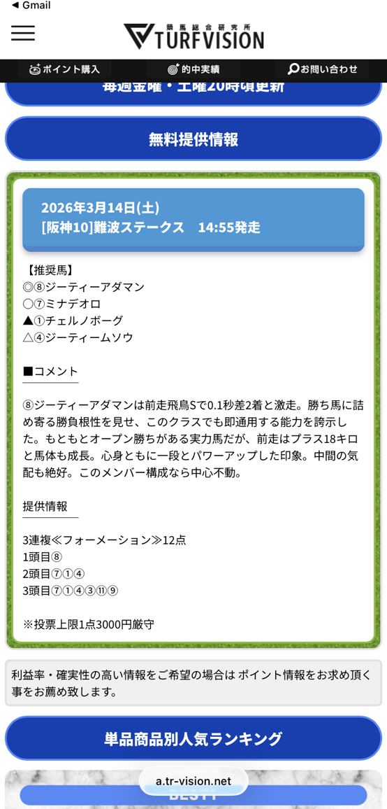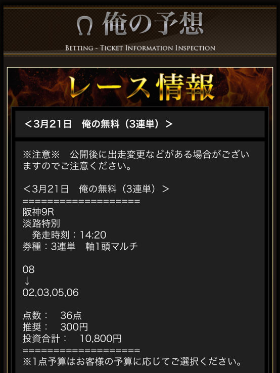 今日公開されていた無料情報3レース全部的中貰えました、3連単万馬券当たるし、堅かったけど毎日杯を1点で的中は流石です! 明日の高松宮記念1点的中期待しています! 今日だけで合計7万1160円勝てました!