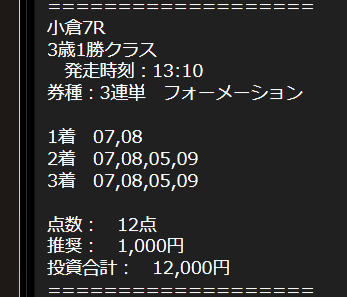 最終週の小倉は絶対稼げるといっていた通りパフォーマンス最高の予想でした。