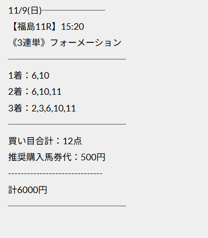 秋競馬一発目のG1的中が3連単14万馬券。 この買い目的に3着に入ったエキサイトバイオ2番手評価って事だよな。 1402.7倍決着だったけど仮にエキサイトバイオが2着だったら3連単2585.8倍で一撃2,068,640円だった。 残念ながら3着だったけどそれでも帯封突破の1,122,160円的中。 2025年も佳境に入り末恐ろしい予想サイト発見しちゃいました。