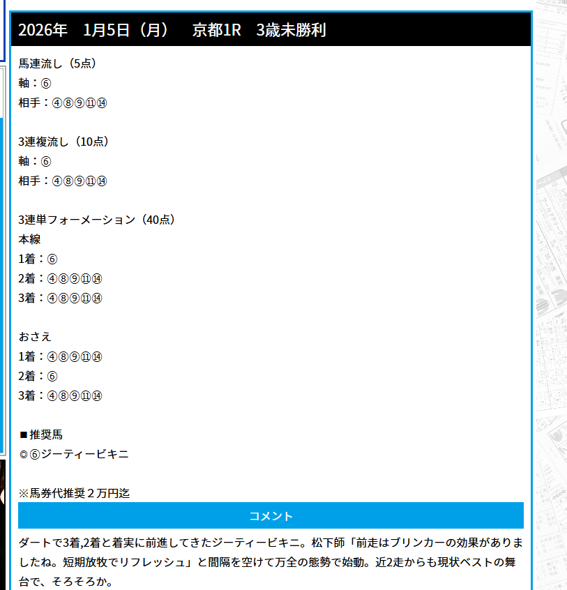 少点数買い目のご提供!